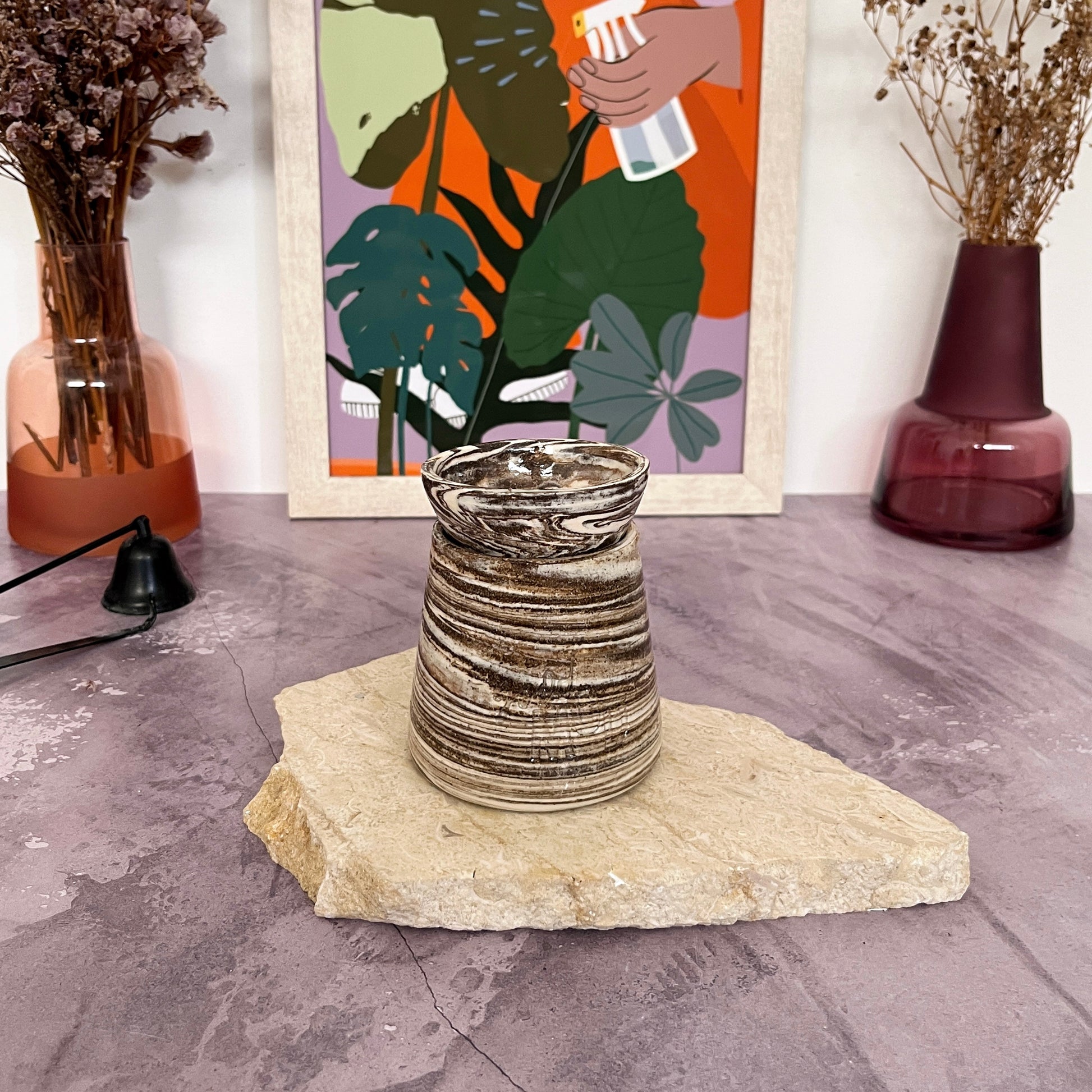 El warmer es de cerámica hecho a mano, por eso puede que no sea perfecto :)